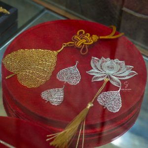 Bộ bát đĩa bạc được uốn thủ công hoàn toàn từ các sợi chỉ bạc ta nguyên chất theo phương thức truyền thống.