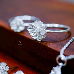 Chất liệu bạc 999, uốn thủ công từ các sợi chỉ bạc ta.