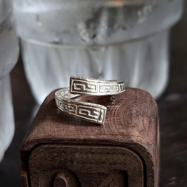 Nhẫn Oriental charm. Hoạ tiết kỉ hà được chạm thủ công trên nền chất liệu bạc ta nguyên chất